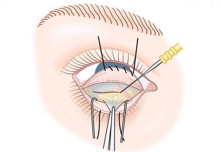 - симптомокомплекс «сухого ока» - його розвитку сприяє лагофтальм – неповне закривання ока. Для запобігання цьому стану необхідно дотримуватись умов передопераційної підготовки та інтраопераційної техніки;