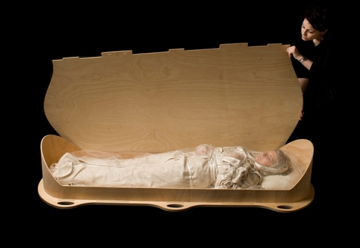 Дизайнер з Австралії Піа Інтерланді, коли помер її дідусь, зіткнулася з проблемою одягання померлого перед похованням, що надалі й спонукало її на створення спеціального одягу для покійних. Ідея полягала в тому, що одяг повинен одягатися на тіло покійника максимально зручно, а також був виготовлений з матеріалів, які не заважатимуть природному розкладу тіл у могилі.