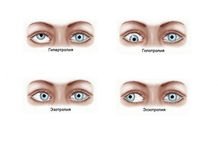 1. Горизонтальна косоокість. Даний вид, у свою чергу, ділиться на косоокість (езотропію), що сходиться, при якому очі або око скошуються до перенісся, і косоокість (екзотропію), що розходяться, при якому очі відхиляються назовні.
