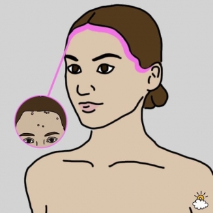 Якщо прищі з'являються в області скронь, на проміжку між очима та лінією волосся, причиною проблеми може бути нестача рідини.