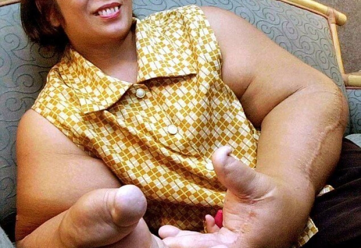Лікарі змогли поставити їй діагноз. Жінка страждає на локалізований гігантизм пальців рук. Кожна з її рук важить понад 10 кг, а в діаметрі досягає розмірів водопровідної труби. Через свою недугу вона постійно соромилася виходити з дому. Але рідні умовили її розпочати працювати у сімейному магазині. У ньому вона працює донині. Але будь-які дії, які потрібно робити руками, даються їй дуже важко.